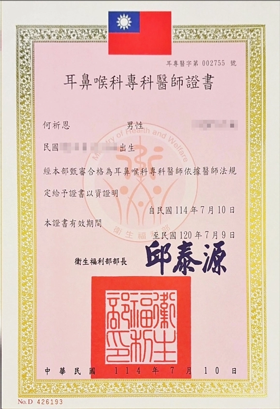 - 台大兒童醫院耳鼻喉部總醫師